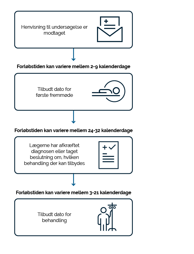 I figuren nedenfor ses de anbefalede forløbstider for pakkeforløb for kræft.