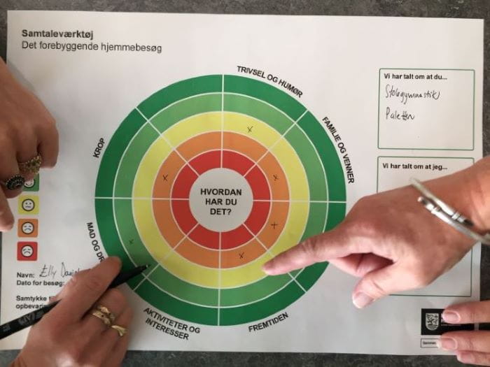 Sammen fandt vi frem til, at de forebyggende hjemmebesøg i højere grad skulle være en helhedsorienteret samtale, hvor borgeren styrer samtalen. Det er altså ikke medarbejderens opgave at hive information ud af borgeren, men snarere at lade borgeren bestemme, hvad de føler er vigtigt at fokusere på. Som en medarbejder fint reflekterede: ”Er det os der skal informeres om borgeren, eller er det borgeren der skal informeres om mulighederne vi kommer med?”