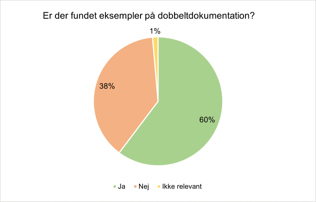 I de indledende audits viste resultaterne dobbeltdokumentation i 60 % af journalerne. Dette pegede på, at eliminering af både unødvendig dokumentation og dobbeltdokumentation var blandt forbedringspotentialerne.