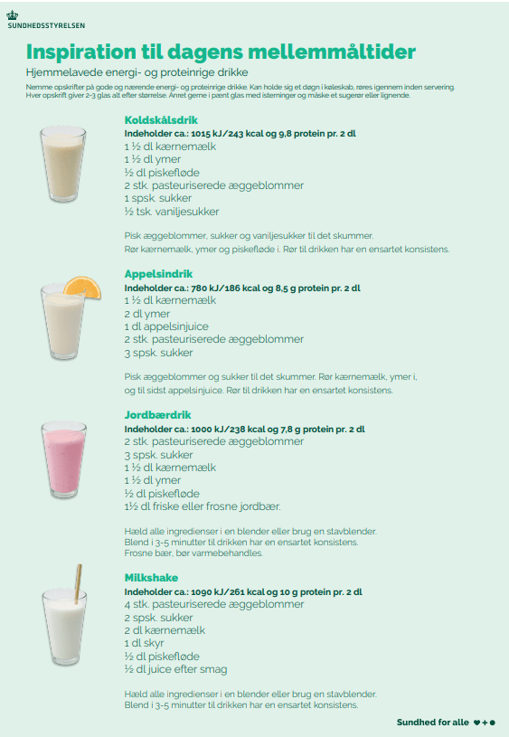 Inspiration til dagens mellemmåltider BORGER, PJECER OG BREVE 20 APR 2022 Hjemmelavede mellemåltider Hjemmelavede energi- og proteindrikke Energi- og proteinrige drikke og is der kan købes