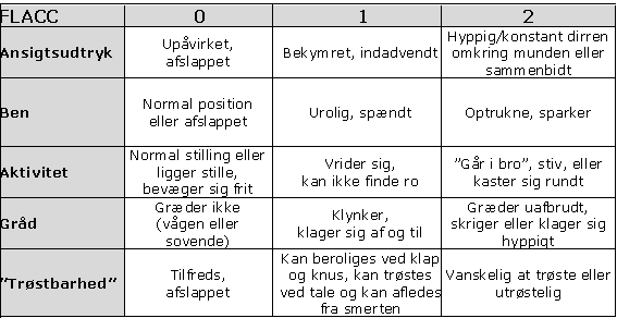 Skalaen bruges til at vurdere barnets smerter, og om barnets smertedækning er tilfredsstillende.