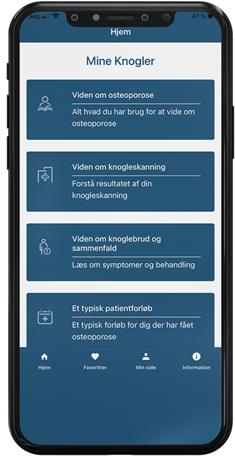 I denne brugervejledning kan du læse om, hvordan du henter appen Mine Knogler, som er udviklet af Sundhedsstyrelsen i samarbejde med Videnscenter for Knoglesundhed.
