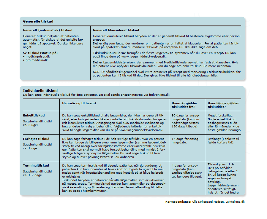 Her kommer en oversigt over de forskellige typer af medicintilskud – både dem, der gives automatisk, og dem, du som læge skal søge til din patient.