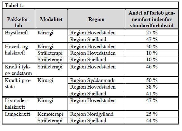 Sundhedsstyrelsen finder resultatet tilfredsstillende set i lyset af, at det anslås, at op mod en tredjedel af patienterne har anden betydende sygdom eller har et særligt kompliceret forløb, som kan forsinke patientforløbene. Sundhedsstyrelsen finder dog også, at der er en række områder, hvor der er plads til forbedring.