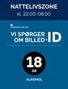 Skilte med oplysning aldersgrænser for detailsalg af alkohol nattelivszoner
