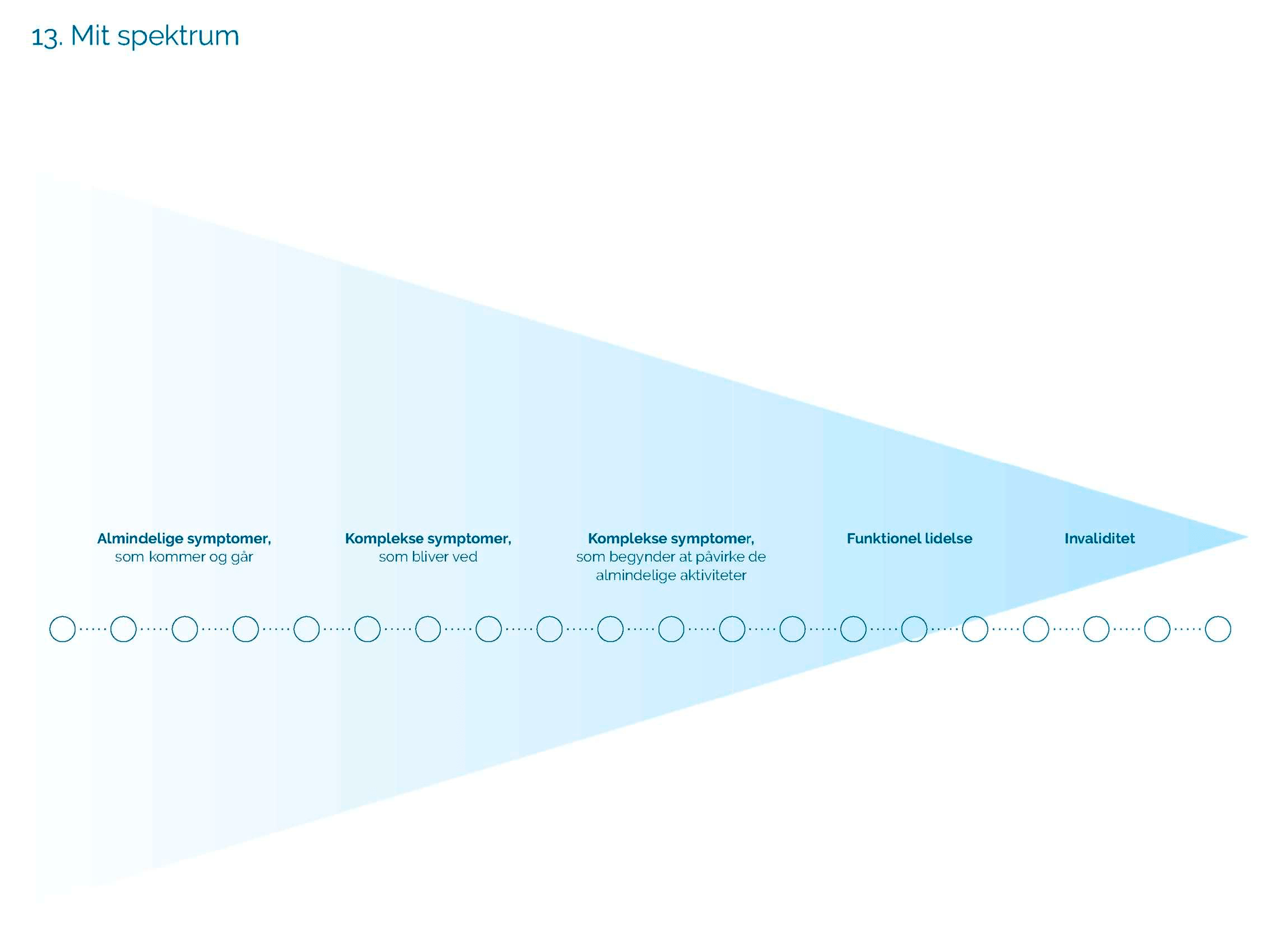 En funktionel lidelse kan betragtes som et spektrum, der bevæger sig fra det normale, hvor alle mennesker oplever forskellige symptomer fra kroppen, til de vedvarende og komplekse symptomer, der efterhånden begynder at påvirke evnen til at gennemføre almindelige aktiviteter. Dette kan udvikle sig til langvarige funktionelle lidelser, hvor du ikke er i stand til at arbejde og fungere normalt, og hvor du har brug for at modtage hjælp og behandling.