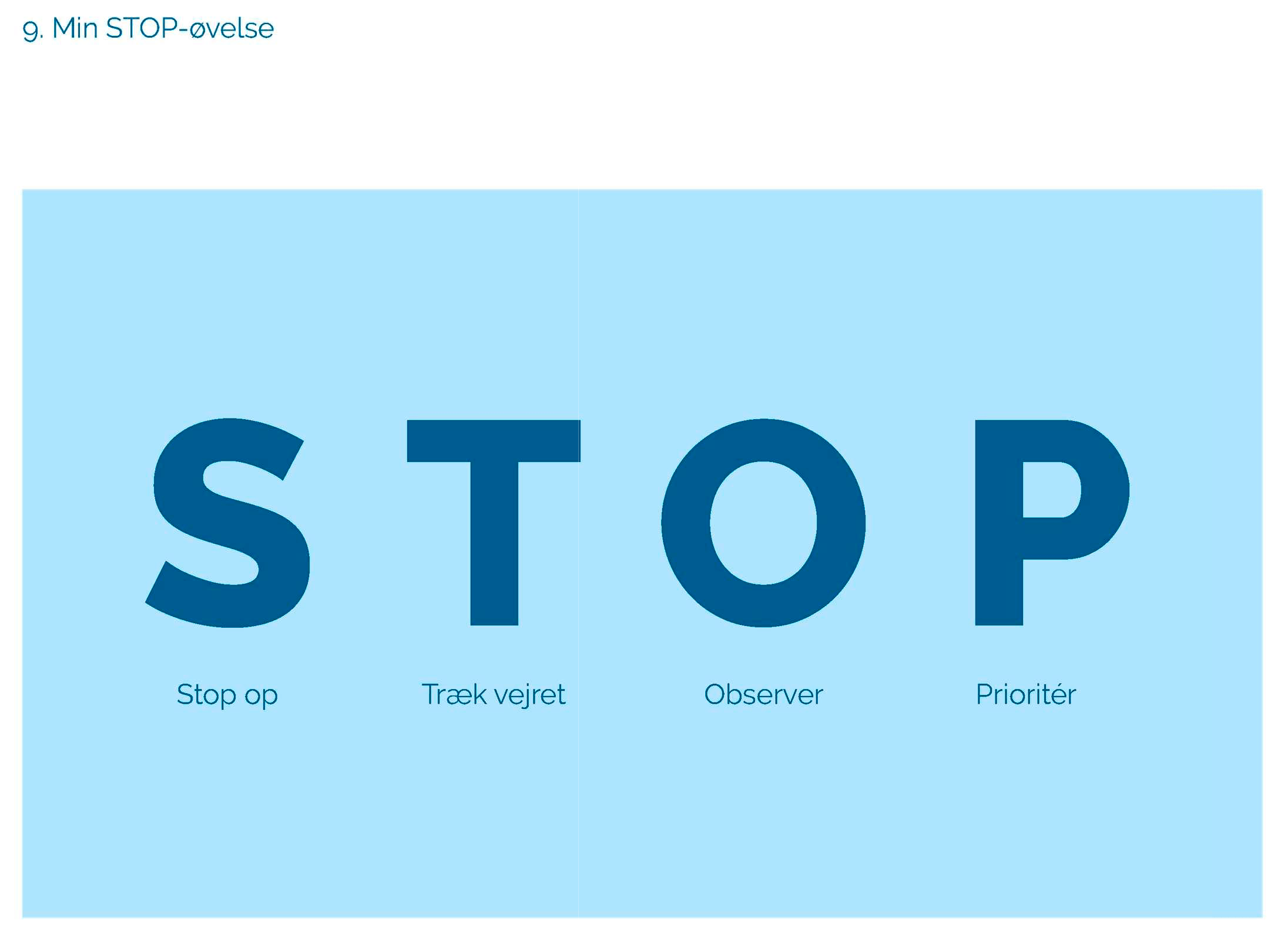 Min STOP-øvelse anvendes til at hjælpe dig til at blive mere bevidst om, hvordan du egentlig har det og samtidig hjælpe dig til at finde ud af, hvordan du bedst bør reagere på det, du mærker.