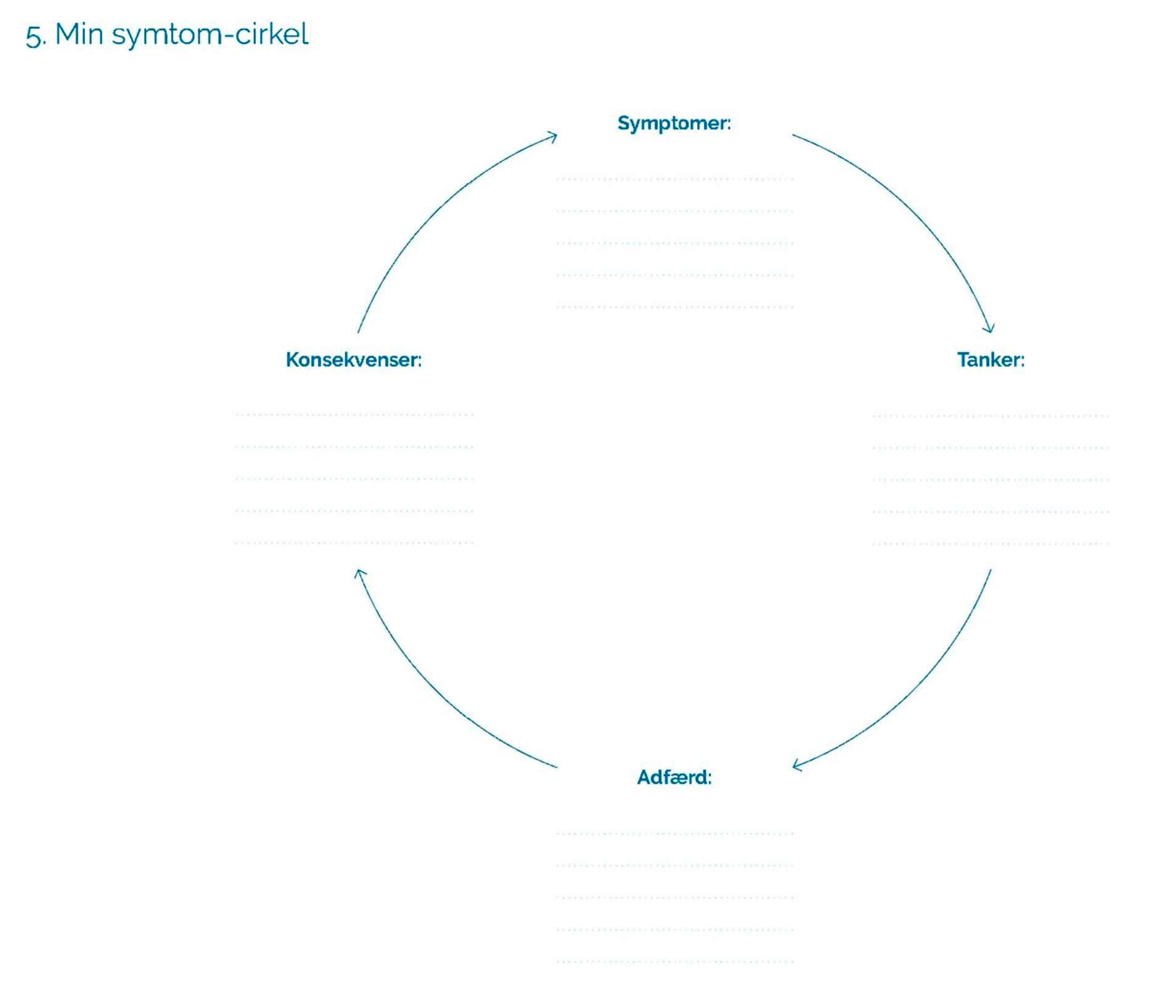 Min symptom-cirkel anvendes til at blive bevidst om sammenhænge mellem dine symptomer, tanker, adfærd og konsekvenser.